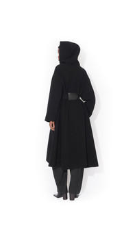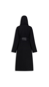 DETAILS Large wrap coat in double face wool Oversized cut, flowy fit, mid calf length, discreet pockets Drop sleeves Self fabric belt, leather back patch for belt loop, wide shawl lapel Made in Italy MATERIALS Highlights MAIN MATERIAL: 100% VIRGIN WOOL LINING: 100% CUPRO PRODUCT REFERENCE: AA9M1127T473C-995