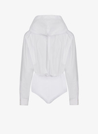 Hooded body shirt Plunging neckline Cheeky culotte in knit Made from cotton poplin Made in Italy DETAILS COMPOSITION: 100% COTTON ADDITIONNAL MATERIAL: 83% VISCOSE, 17% POLYESTER PRODUCT REFERENCE: AA9C08576T611 - 000