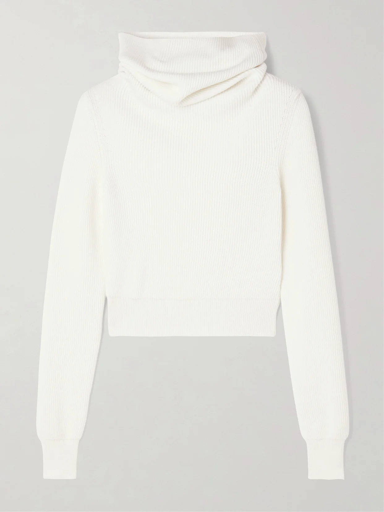 Alaia's sweater embraces two house signatures: elegant drapery and innovative shapes. Blended with plenty of wool, it's rib-knitted with slim sleeves and a fitted, cropped body. Wear yours with the hood up to embrace another hallmark of the brand.
