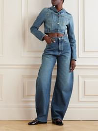 Alaia's interpretation of the classic denim jacket is topped with a generous hood. It has a cropped, boxy shape and is stonewashed to give it a vintage look. Details & Care - Blue denim - Button fastenings through front - 99% cotton, 1% polyurethane