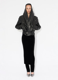 Hooded biker jacket in faded nappa Relaxed fit Cowl hood, shawl collar, integrated belt, zipped pockets Made in Italy DETAILS COMPOSITION: 100% CALF LEATHER LINING: 100% POLYESTER PRODUCT REFERENCE: AA9V0428L008A - 995