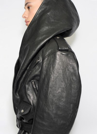 LEATHER HOODED BIKER JACKET