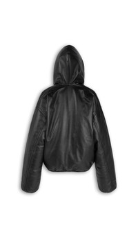 HOODED LEATHER BOMBER