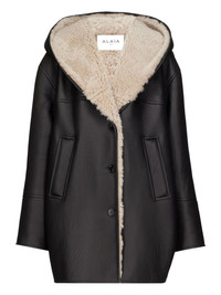 hooded shearling coat Highlights - Black - Beige shearling lining - Button fastening - Hooded - Flap pockets - Long sleeves Made in Italy Composition Sheepskin 100% Washing instructions Read Manufacturer Guidelines