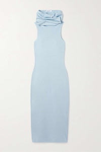 EDITORS'NOTES Alaïa's sculpting silhouettes are somewhat of a house staple - even in its simplicity, there's no doubting who this dress is by. It's made from stretch-knit with an integrated hood that can be left down to create a draped neckline. The icy-blue shade looks so elegant with white gold jewelry. SIZE & FIT Model measurements: - Fits true to size, take your normal size - Designed for a close fit - Fine knit - Model is 177cm/ 5'10" and is wearing a FR 36 - Bust: 79cm/ 31" - Waist: 61cm/ 24" - Hip: 89cm/ 35" DETAILS & CARE - Light-blue stretch-knit - Slips on - 88% viscose, 11% polyamide, 1% polyurethane - Designer color: Glacier Blue
