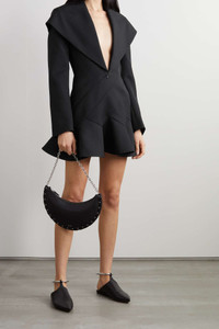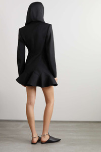 EDITORS'NOTES Spring '22 is Pieter Mulier's first season at Alaïa, so the Creative Director made sure to pay homage to founder Azzedine - the result is lots of hooded styles that recall his Tunisian heritage. This wool dress mini dress has a deep, plunging neckline and is meticulously paneled at the bodice to create a pretty, fluted mini skirt. SIZE & FIT Alaïa follows a new size guide. Please refer to size and fit information below. - Fits true to size, take your normal size - Designed for a slightly loose fit - Mid-weight, non-stretchy fabric - Wraparound design, fastens at the waist - Model is 175cm/ 5'9" and is wearing a FR 36 DETAILS & CARE - Black wool - Concealed asymmetric zip fastening through front and side - 100% wool; lining: 100% cupro - Dry clean