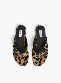 Flat thong mules Pony haircalf leather with leopard pattern Matching leather insole Made in Italy DETAILS MAIN LINING:100%LAMBSKIN SOLE:80% CALFSKIN LEATHER 20% RUBBER UPPER MATERIAL 1:100% CALFSKIN LEATHER PRODUCT REFERENCE : AA3S131CK205 - 157