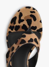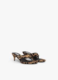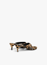 Heel thong mules Pony haircalf leather with leopard pattern Matching leather insole 55mm heel Made in Italy DETAILS MAIN LINING:100%LAMBSKIN SOLE:80% CALFSKIN LEATHER 20% RUBBER UPPER MATERIAL 1:100% CALFSKIN LEATHER PRODUCT REFERENCE : AA3S132CK205 - 157