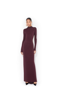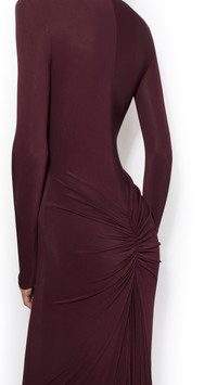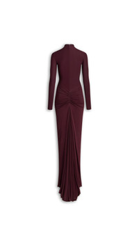 DETAILS Draped long sleeve dress in soft jersey Maxi length, high neck, long sleeves, mermaid silhouette Bodycon fit cinched at the waist Invisible side zip closure, unlined Made in Italy MATERIALS Highlights MAIN MATERIAL: 100% VISCOSE PRODUCT REFERENCE: AA9R2870J090C-713