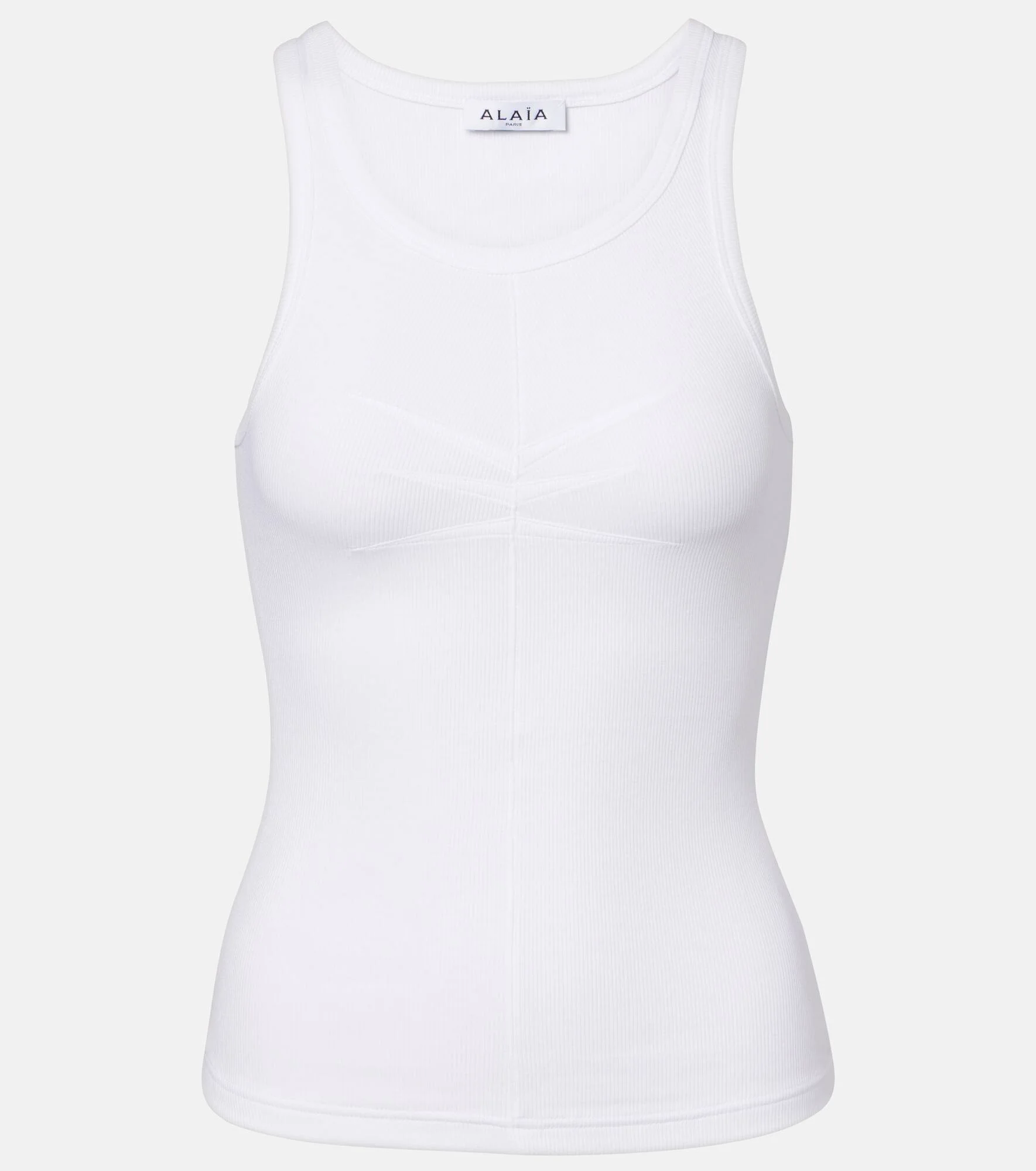 Upholding the legacy of Azzedine Alaia, the maison’s collections achieve an artful balance between sculptural and wearable. Crafted from jersey, this tank top is a year-round essential for effortless layering. Product Details - Material: 48% cotton, 47% viscose, 5% elastane - Care instructions: dry clean - Made in Italy - Designer color name: Blanc - Item color: white - Item number: P01118831 Size & Fit - True to size - Fitted - Stretchy fabric - Falls to the hip - The model seen in the picture is 178cm-5'10" and wearing a size FR 34