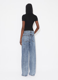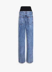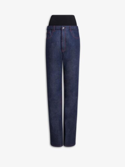 Snow denim jeans with knitted band High waisted black figure hugging knitted belt Loose and straight fit 4 pockets Alaïa dart details at the back Made from Japanese snow denim Made in Italy DETAILS COMPOSITION: 99% COTTON, 1% POLYURETHANE KNITWEAR ADDITIONNAL MATERIALS: 48% VISCOSE, 33% POLYAMIDE, 10% POLYESTER, 9% ELASTANE PRODUCT REFERENCE: AA9P01556T535 - 524