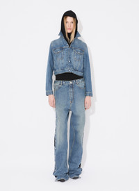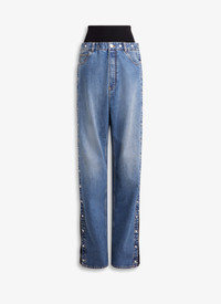 Knit band denim pants Straight cut, loose-fit Elasticated knit band around the waist Decoratove Snaps along the external legs hemlines Crafted in Japanese stone washed denim Made in Italy DETAILS COMPOSITION: 99% COTTON, 1% POLYURETHANE PRODUCT REFERENCE: AA9P02706T536 - 525