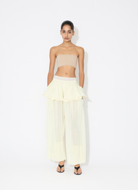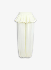 Peplum pants with skirt overlay in fine viscose knit Mid-rise, wide leg with removable elastic cuff strings Loose fit Made in Italy DETAILS MAIN MATERIAL: 74% VISCOSE 25% POLYAMIDE 1% ELASTANE PRODUCT REFERENCE: AA9P1174K053A - 239