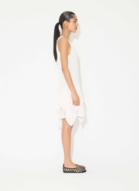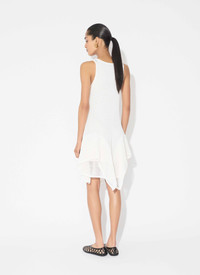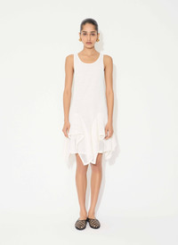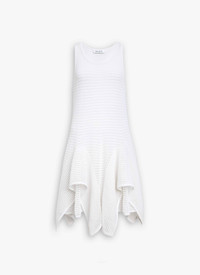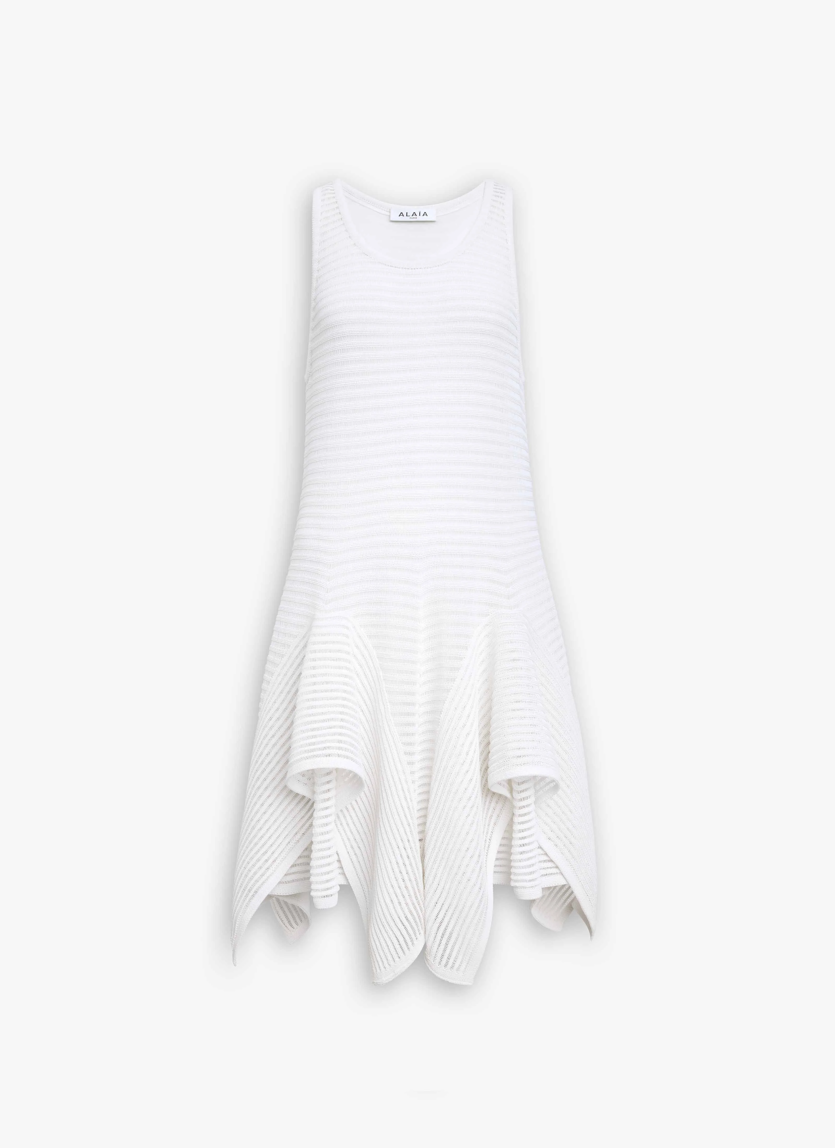 Ruffle dress knitted from ladder knit enhanced with layered cascading skirt with open panels Round godets inserted into the hem to give this textured, graphic ladder look Short length, boat neckline, sleeveless design Optional lining Made in Italy DETAILS MAIN MATERIAL : 65 % COTTON 35% POLYAMIDE PRODUCT REFERENCE : AA9R2710K074B - 000