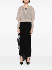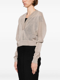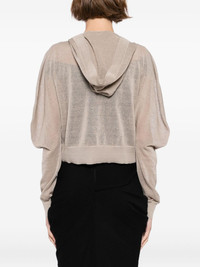 knitted cropped hoodie Highlights - Beige - V-neck - Drop shoulder - Long sleeves - Ribbed cuffs and hem Made in Italy Composition Linen/Flax 90%, Silk 10% SIZE & FIT Model measurements Height 5 ft 10 in(1.78 m) Bust/Chest 29.92 in(76 cm) Hips 34.64 in(88 cm) Waist 24.8 in(63 cm) FittingInformation Designed for a slim fit that sits just away from the body offering a close yet comfortable fit Cropped in length Made with a lightweight knit, this piece offers some stretch Washing instructions Dry Clean Only