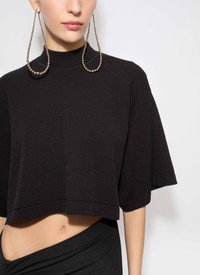 Cropped t-shirt knitted from light weight cotton Mock neck, square short sleeves Loose fit Made in Italy DETAILS MAIN MATERIAL : 66% COTTON 18% POLYAMIDE 16% WOOL PRODUCT REFERENCE : AA9H1232K083B - 995