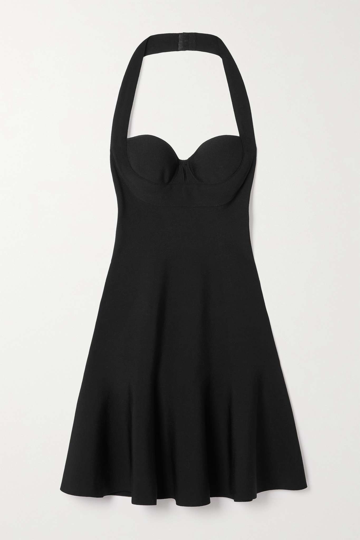 EDITORS'NOTES The defined cups on Alaïa's knitted dress have been a house signature since the late-'80s supermodel era. It's designed for a second-skin fit with sweeping halterneck straps and an elegant fluted hem. Heels are the obvious choice but ballet flats would look so chic, too. SIZE & FIT - Fits true to size, however those who are between sizes should take the smaller size - Designed for a close fit - Internal bust support - Mid-weight, slightly stretchy fabric - Model is 180cm/ 5’11” and is wearing a FR 34 DETAILS & CARE - Black viscose, polyamide, polyester and polyurethane-blend - Hook fastenings at neck, concealed zip fastening along back - 62% viscose, 23% polyamide, 13% polyester, 2% polyurethane