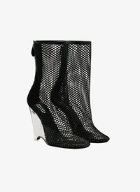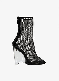 wedge booties mounted on a plexi structure net upper zip closure at the back for an easy opening made in italy DETAILS COMPOSITION: 95% POLYAMIDE, 5% PATENT CALFSKIN LINING: 100% LAMBSKIN SOLE: 100% CALFSKIN HEEL: 10 CM, 100% PLEXIGLASS PRODUCT REFERENCE: AA3B082TK007 - 999