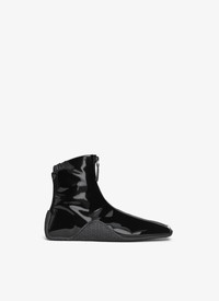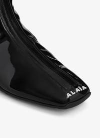 Sleek and fitted ankle sneakers with signature Vienne printed sole Tonal zip on the middle, contrasting Alaia logo on the toe edge, elasticated at the back for optimal comfort Black stretch patent fabric Made in Italy DETAILS MAIN LINING: 65% POLYESTER 18% ELASTANE 17% POLYAMIDE SOLE: 100% RUBBER UPPER MATERIAL 1: 65% POLYURETHANE 35% POLYESTER PRODUCT REFERENCE: AA3T019TK024 - 999
