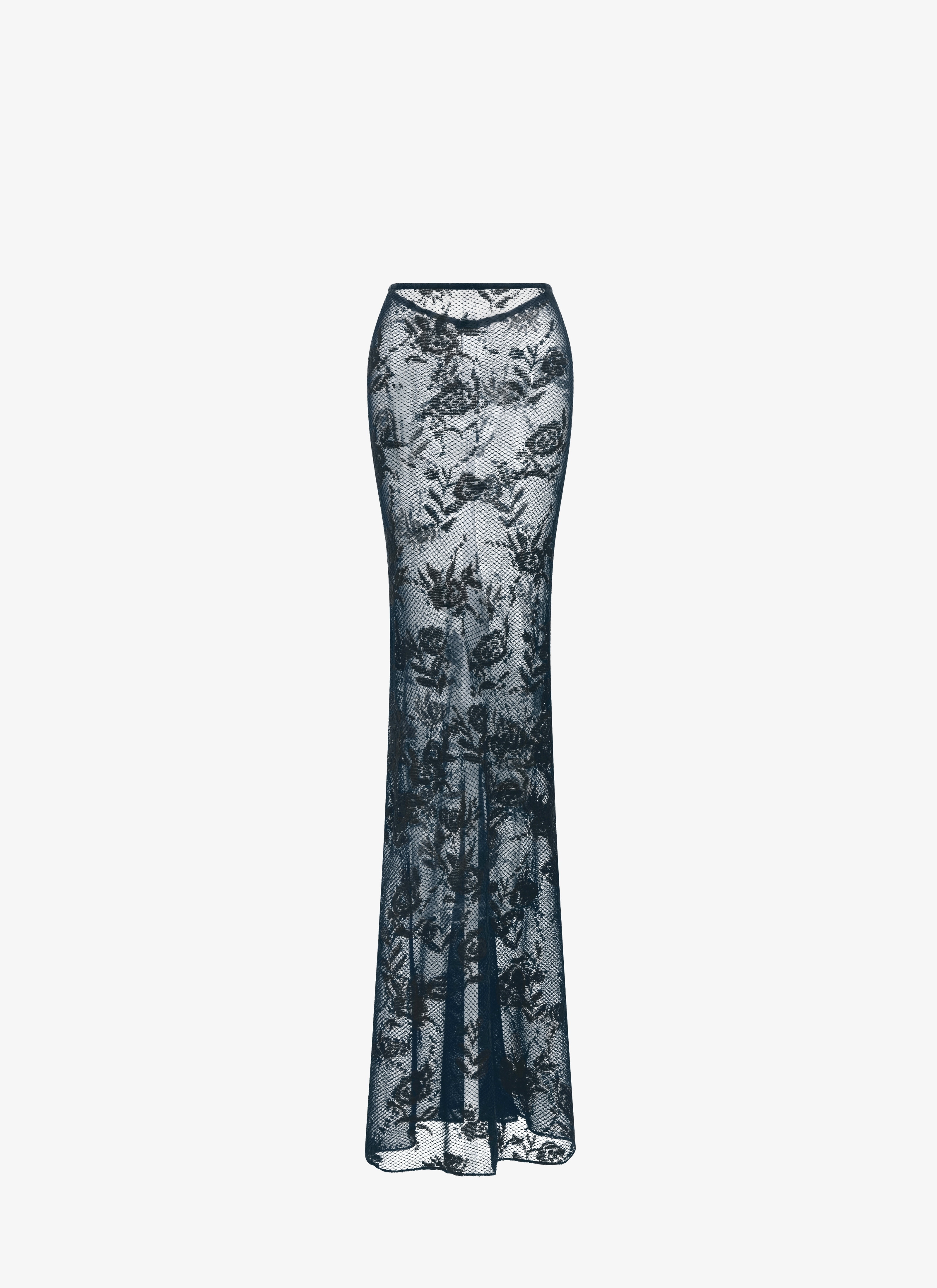 lace skirt bodyconscious intarsia rose pattern placed organically over the body knitted from a sheer viscose/nylon blend yarn and a fine cotton mesh made in italy DETAILS COMPOSITION: 62% COTTON ADDITIONAL MATERIAL: 30% VISCOSE, 8% POLYAMIDE THE MODEL MEASURES 1m78 AND WEARS A SIZE 34 PRODUCT REFERENCE: AA9J21544M803 - 506