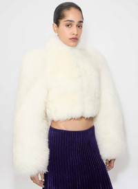 Cropped jacket in lamb shearling Long sleeves, cropped length, high neck, puff shoulders Fitted cut Made in Italy DETAILS MAIN MATERIAL : 100% LAMBSKIN LEATHER PRODUCT REFERENCE : AA9V1185L027B-054