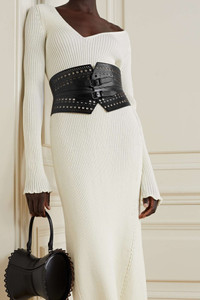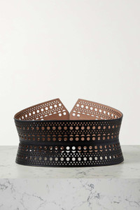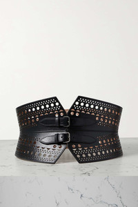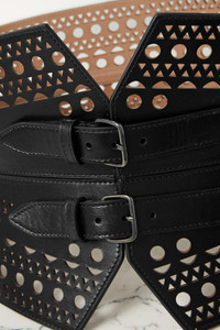 EDITORS'NOTES Alaïa's corset-inspired belts are masterfully crafted to flatter a woman's figure at every angle. Italian-made from intricately laser-cut black leather, this style is notched at the top and bottom to accentuate your waist and fastens with two adjustable buckles that can be worn at the front or back. SIZE & FIT - Designed to be worn on the waist DETAILS & CARE - Black leather (Calf) - Buckle fastenings - Made in Italy