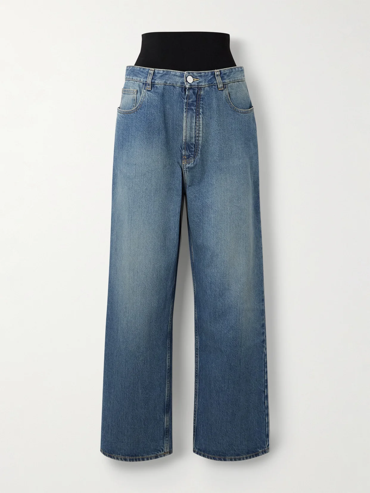 Even jeans feel totally luxe and unique in the hands of Alaia's team. This wide-leg pair is layered with the label's signature jersey - the panel feels weighted, creating a cinched waist that contrasts the low-rise silhouette.