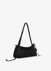 Small East West curved bag that hugs the body Hinge opening system wrapped with leather Signature folding detail on the bottom of the bag Decorative ties with metallic rings Shoulder or waist carry thanks to an adjustable strap Soft feel nubuck calfskin leather Dimensions (cm) : L 25 X H 12,5 X D 7 Made in Italy DETAILS MAIN MATERIAL: 100% CALFSKIN LEATHER MAIN LINING: 100% CALFSKIN LEATHER PRODUCT REFERENCE: AA1S01426CA214 - 999