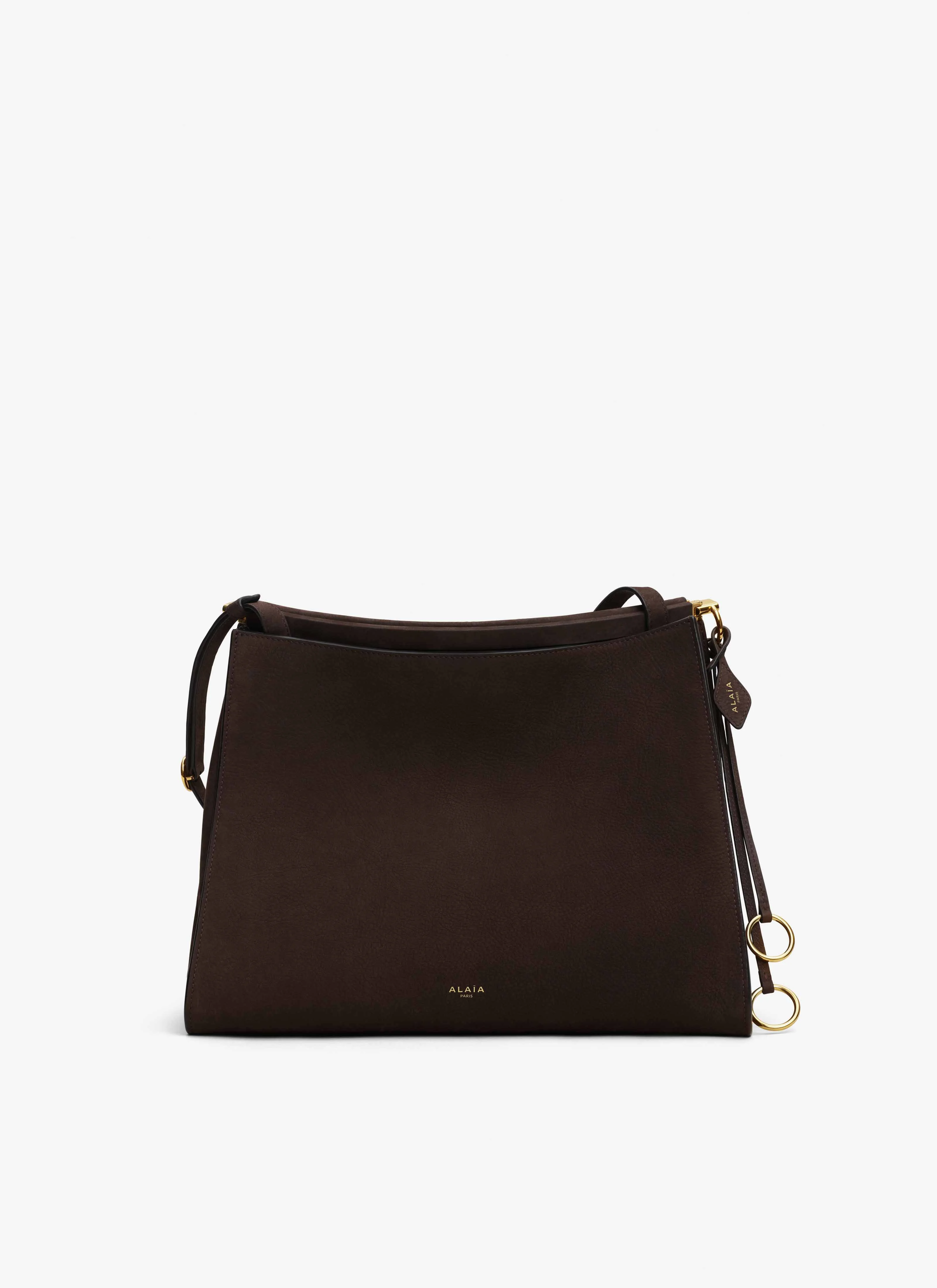 Curved square shape bag that hugs the body Discreet pocket with hinge opening system wrapped with leather, completed by one large front gusset with magnetic closure Signature folding detail on the bottom of the bag Decorative ties with metallic rings Shoulder carry, adjustable handle Soft feel nubuck calfskin leather Dimensions (cm) : L 33 X H 24,5 X D 16. Made in Italy DETAILS MAIN MATERIAL:100% CALFSKIN LEATHER MAIN LINING:100% CALFSKIN LEATHER PRODUCT REFERENCE : AA1S01433CA214 - 733