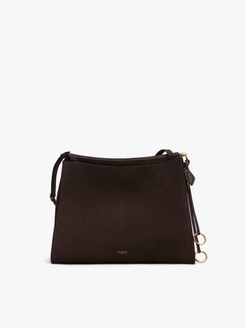 Curved square shape bag that hugs the body Discreet pocket with hinge opening system wrapped with leather, completed by one large front gusset with magnetic closure Signature folding detail on the bottom of the bag Decorative ties with metallic rings Shoulder carry, adjustable handle Soft feel nubuck calfskin leather Dimensions (cm) : L 33 X H 24,5 X D 16. Made in Italy DETAILS MAIN MATERIAL:100% CALFSKIN LEATHER MAIN LINING:100% CALFSKIN LEATHER PRODUCT REFERENCE : AA1S01433CA214 - 610