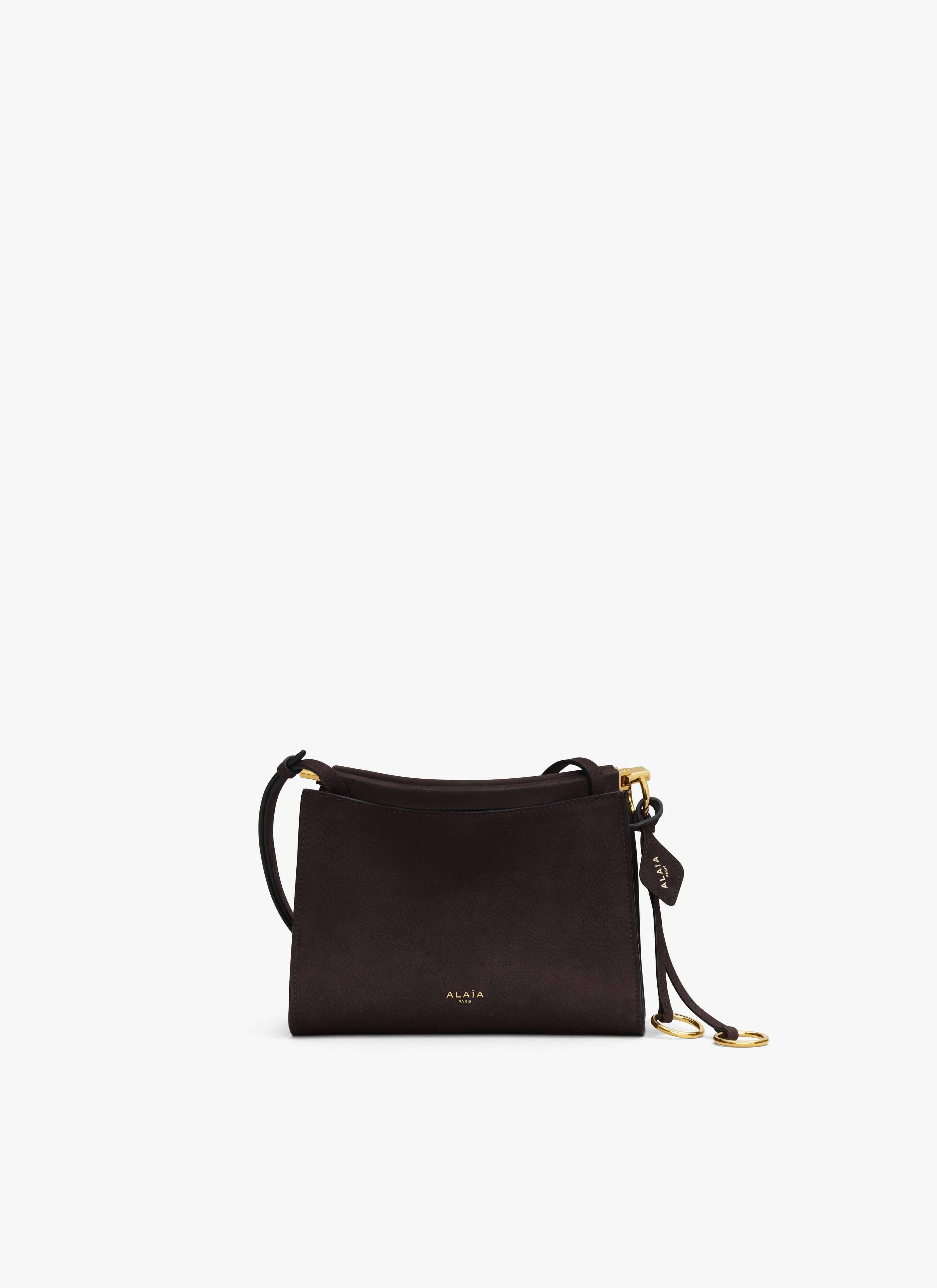 Curved square shape bag that hugs the body Discreet pocket with hinge opening system wrapped with leather, completed by one large front gusset with magnetic closure Signature folding detail on the bottom of the bag Decorative ties with metallic rings Shoulder or cross body carry thanks to an adjustable handle Soft feel nubuck calfskin leather Dimensions (cm) : L 20 X H 15 X D 9. Made in Italy DETAILS MAIN MATERIAL:100% CALFSKIN LEATHER MAIN LINING:100% CALFSKIN LEATHER PRODUCT REFERENCE : AA1S01420CA214 - 733