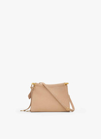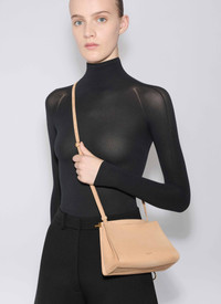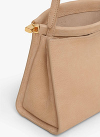 Curved square shape bag that hugs the body Discreet pocket with hinge opening system wrapped with leather, completed by one large front gusset with magnetic closure Signature folding detail on the bottom of the bag Decorative ties with metallic rings Shoulder or cross body carry thanks to an adjustable handle Soft feel nubuck calfskin leather Dimensions (cm) : L 20 X H 15 X D 9. Made in Italy DETAILS MAIN MATERIAL : 100% CALFSKIN LEATHER PRODUCT REFERENCE : AA1S01420CA214-148