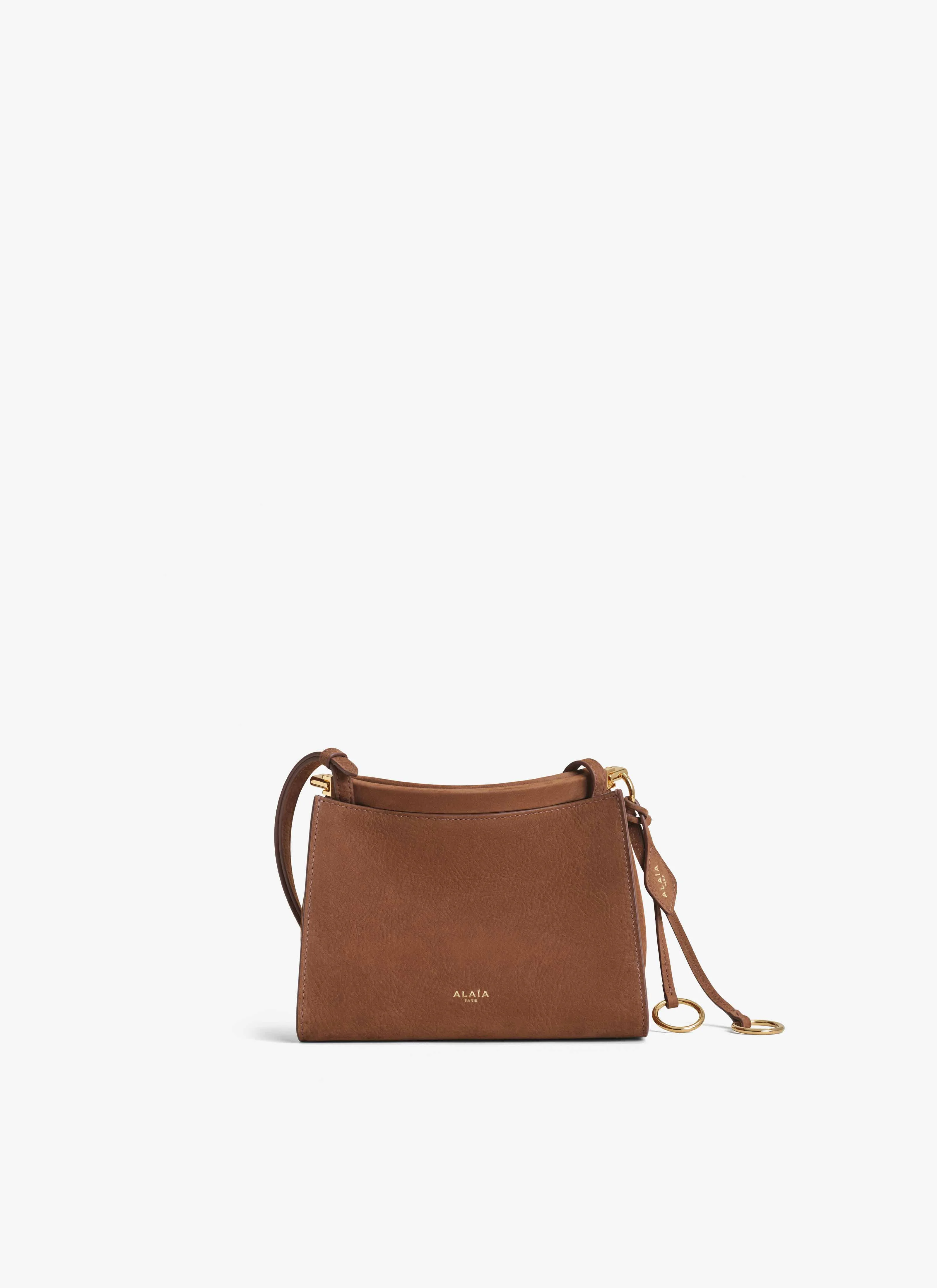 Curved square shape bag that hugs the body Discreet pocket with hinge opening system wrapped with leather, completed by one large front gusset with magnetic closure Signature folding detail on the bottom of the bag Decorative ties with metallic rings Shoulder or cross body carry thanks to an adjustable handle Soft feel nubuck calfskin leather Dimensions (cm) : L 20 X H 15 X D 9. Made in Italy DETAILS MAIN MATERIAL:100% CALFSKIN LEATHER MAIN LINING:100% CALFSKIN LEATHER PRODUCT REFERENCE : AA1S01420CA214 - 731