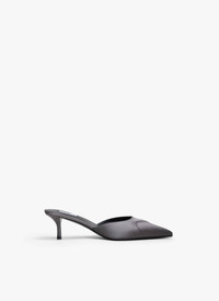 Pointy kitten heels mules with a tonal 3D heart on the toe, a new take on the signature Le Cœur line 55 mm heel Satin fabric Made in Italy DETAILS MAIN LINING:100%LAMBSKIN SOLE:80% CALFSKIN LEATHER 20% RUBBER UPPER MATERIAL 1:72% VISCOSE 28% SILK PRODUCT REFERENCE : AA3M109TK019 - 755