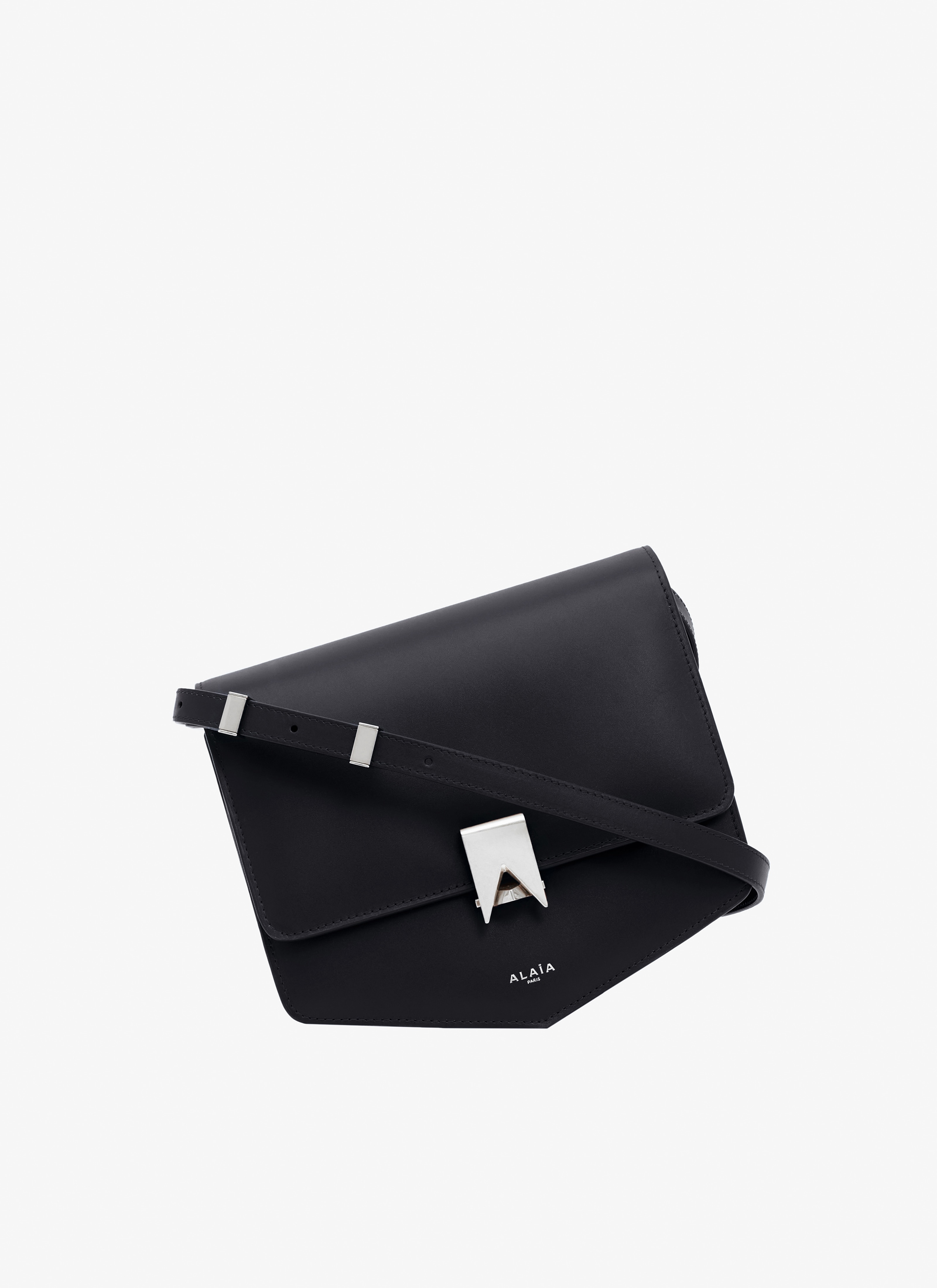 Shoulder bag with shaped bottom, lock inspired by architectural lines and forming an "A" for Alaïa, very functionnal thanks to three gussets, adjustable strap and back pocket. Dimensions (cm): l 21.5 x h 18 x d 10.5. Made in Italy DETAILS COMPOSITION: 100% CALFSKIN LINING: 100% CALFSKIN PRODUCT REFERENCE: AA1S01422CA191 - 959