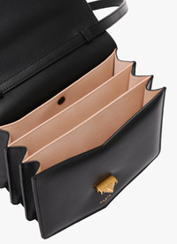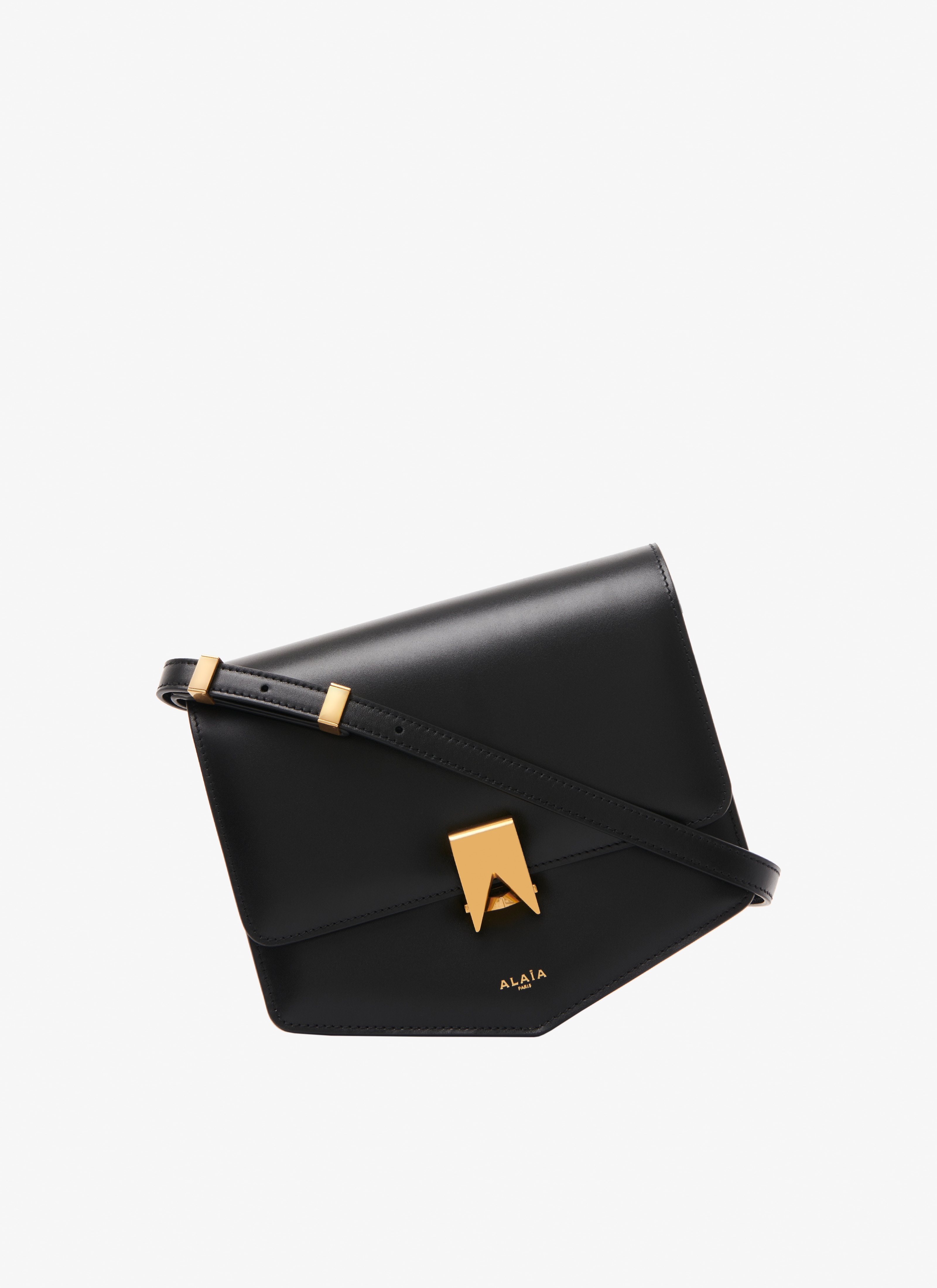 Shoulder bag with shaped bottom, lock inspired by architectural lines and forming an "A" for Alaïa, very functionnal thanks to three gussets, adjustable strap and back pocket. Dimensions (cm): l 21.5 x h 18 x d 10.5. Made in Italy DETAILS COMPOSITION: 100% CALFSKIN LINING: 100% CALFSKIN PRODUCT REFERENCE: AA1S01422CA191 - 999