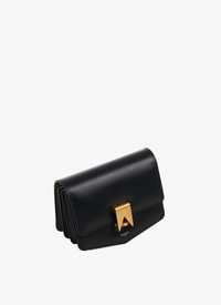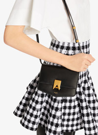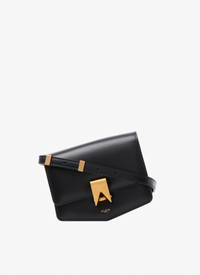 Small shoulder bag with shaped bottom, lock inspired by architectural lines and forming an "A" for Alaïa, very functionnal thanks to three gussets, adjustable strap and back pocket, bag fits a phone. Dimensions (cm): l 17 x h 13 x d 6.5. Made in Italy DETAILS COMPOSITION: 100% CALFSKIN LINING: 100% CALFSKIN PRODUCT REFERENCE: AA1S01417CA191 - 999