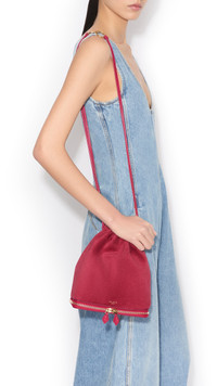 DETAILS Drawstring bag Hand carry, shoulder & crossbody carry - through attachable drawstring straps Wallet compartment with zip closure Suede and shiny goatskin leather Dimensions (cm): L 19 x H 23 x D 10 Made in Italy MATERIALS Highlights MAIN MATERIAL: 100% GOATSKIN LEATHER PRODUCT REFERENCE: AA1L2029CA577-424