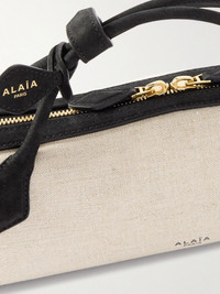 The sleek, elongated shape of Alaia's clutch inspired the name 'Le Teckel', which playfully translates to ‘dachshund’. Crafted in Italy from canvas, it has smooth leather trims and enough space inside for your phone, cardholder and mints. Details & Care - Beige canvas, black leather - Top handles - Unlined - Two-way zip fastening