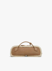 The clutch version of the emblematic Le Teckel bag Elongated shape, tubular short handles with decorative ties, double zip closure, small removable mirror on the inside pocket Hand carry Double-faced merino lambskin shearling with suede leather side Dimensions (cm) : L 31 X H 10 X D 7 Made in Italy DETAILS MAIN MATERIAL : 100% LAMBSKIN LEATHER PRODUCT REFERENCE : AA1S06026I048-143