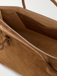 Alaia designs timeless investment pieces that are exceptionally made. This nubuck 'East West' tote is defined by its sharp silhouette and signature diamond-tipped straps. It's a practical size for work, with room for a cardigan, journal and water bottle. Details & Care - Brown nubuck - Top handles - Internal slip pocket - Open top