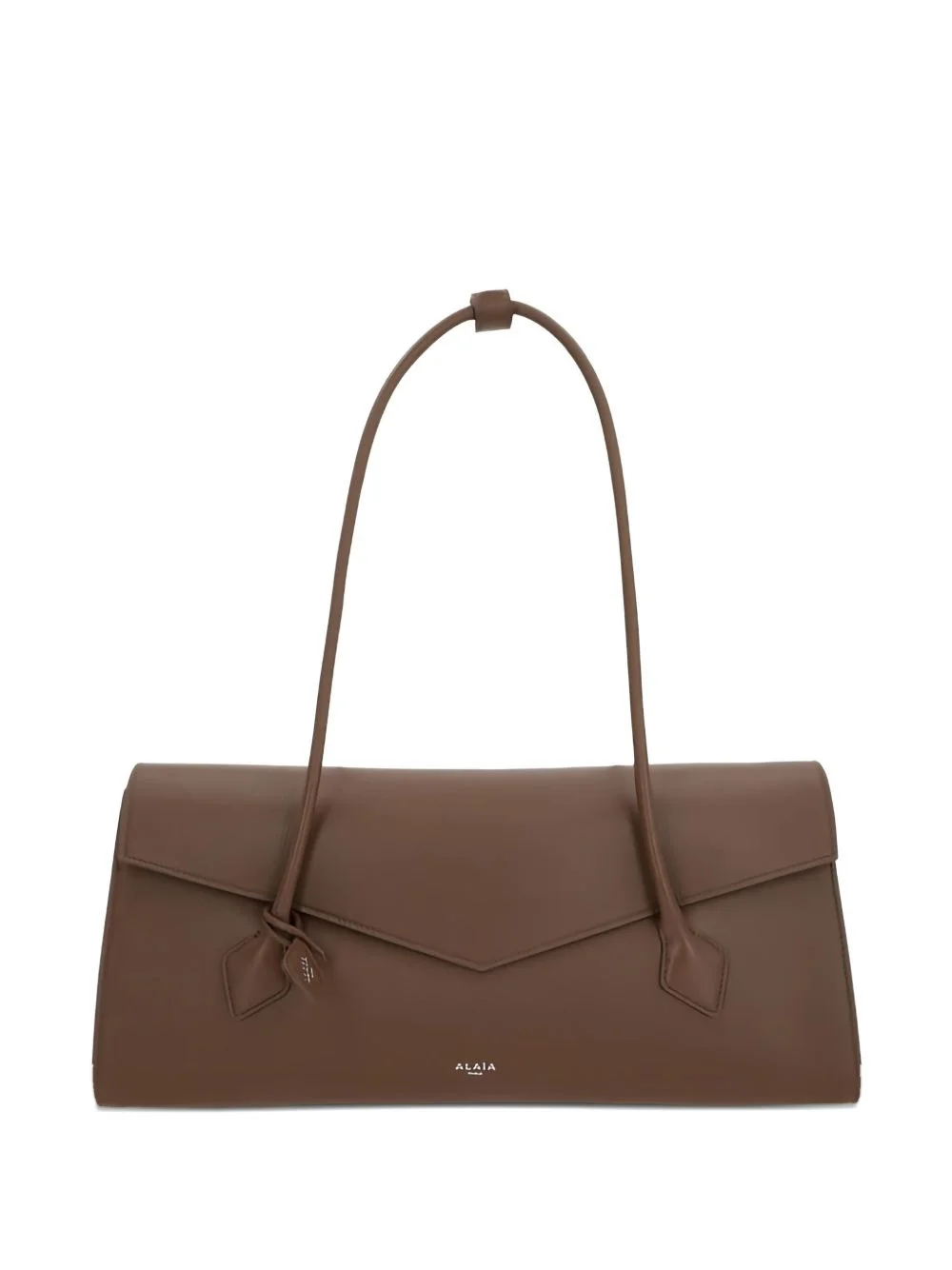 Le Teckel flap-detail leather shoulder bag Highlights - Brown - Calf leather - Top handle - Flap closure - Point detail - Clasp fastening Made in Italy Composition Outer: Calf Leather 100% SIZE & FIT Measurement DEPTH 4.72 in(12 cm) HEIGHT 6.29 in(16 cm) STRAP 34.25 in(87 cm) WIDTH 15.74 in(40 cm)