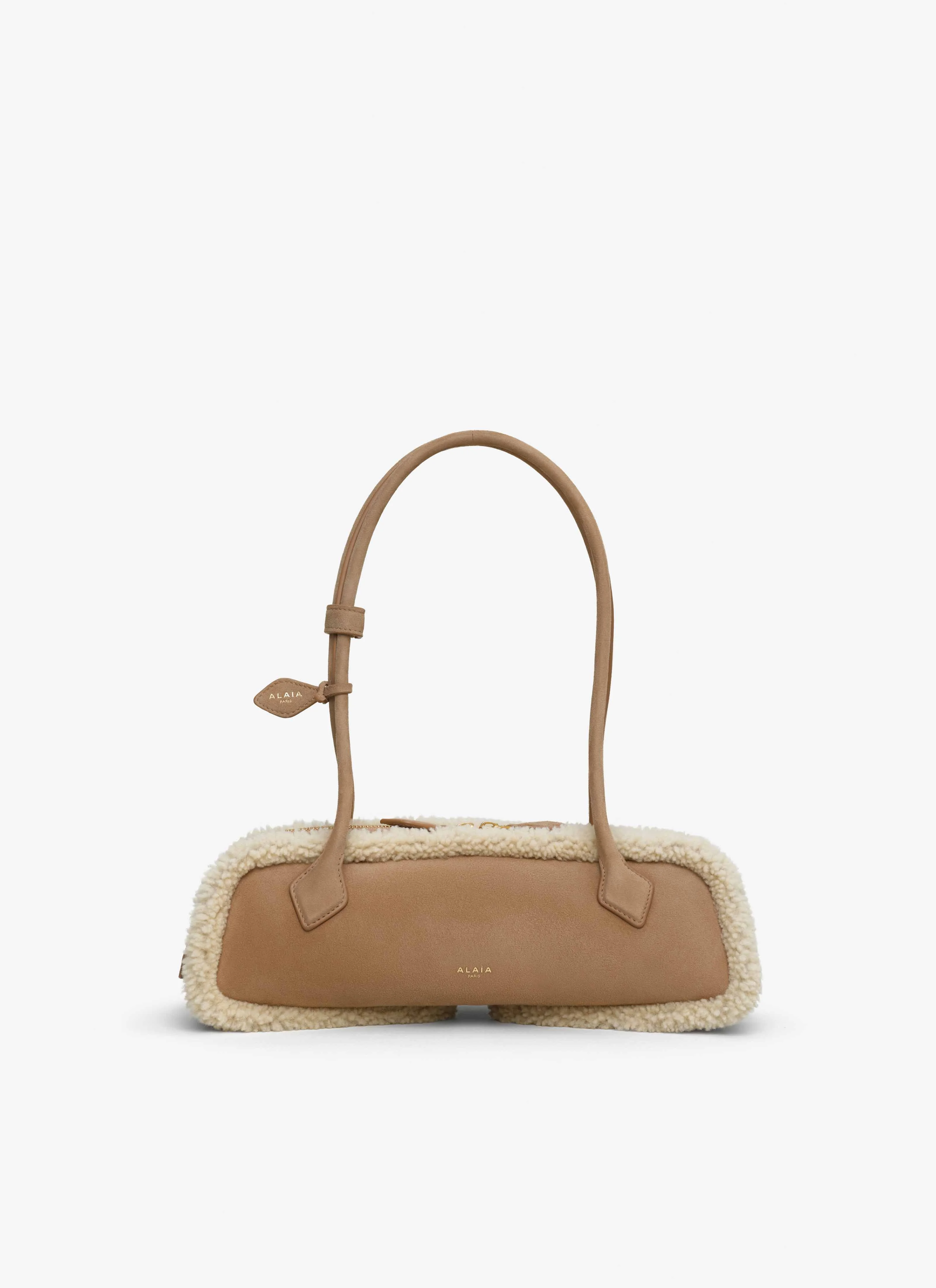 Emblematic shoulder bag with an elongated silhouette Long tubular handles with decorative ties, double zip closure, small removable mirror on the inside pocket Double-faced merino lambskin shearling with suede leather side Dimensions (cm) : L 33 X H 11 X D 10 Made in Italy DETAILS MAIN MATERIAL : 100% LAMBSKIN LEATHER PRODUCT REFERENCE : AA1S06033I048-143
