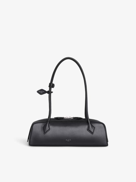 DETAILS Shoulder bag with iconic elongated shape Tubular handles with decorative ties Double zip closure Small removable mirror on the inside pocket Soft feel nubuck calfskin leather Dimensions (cm) : L 33 X H 11 X D 10 Made in Italy MATERIALS Highlights MAIN MATERIAL:100% CALFSKIN LEATHER MAIN LINING:100% CALFSKIN LEATHER PRODUCT REFERENCE: AA1S06033CA214 - 424