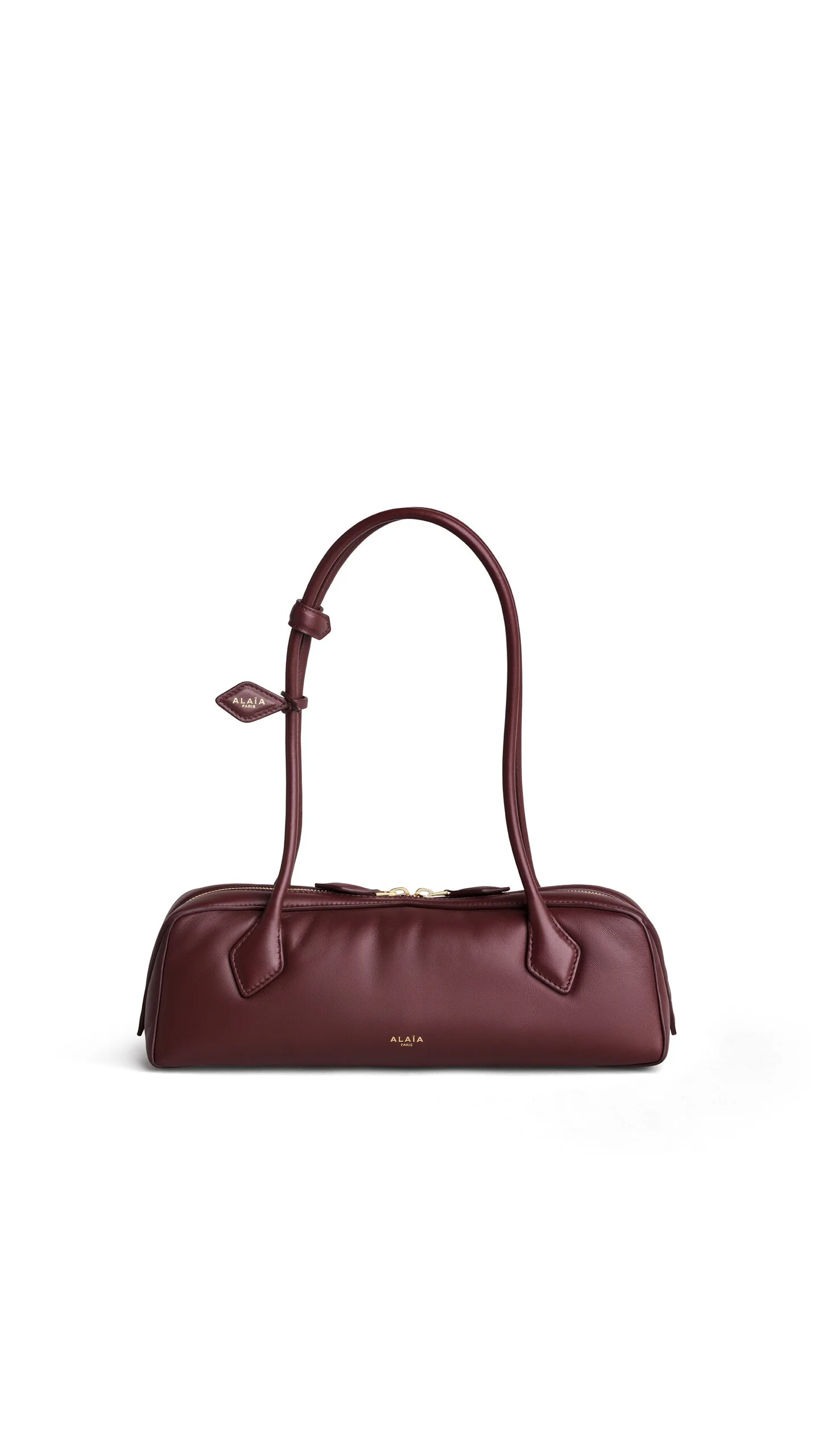 DETAILS Shoulder bag with iconic elongated shape Tubular handles with decorative ties Double zip closure Small removable mirror on the inside pocket Soft padded nappa lambskin leather Dimensions (cm) : L 33 X H 11 X D 10 Made in Italy MATERIALS Highlights MAIN MATERIAL: 100% LAMBSKIN LEATHER PRODUCT REFERENCE: AA1S06033I152-325