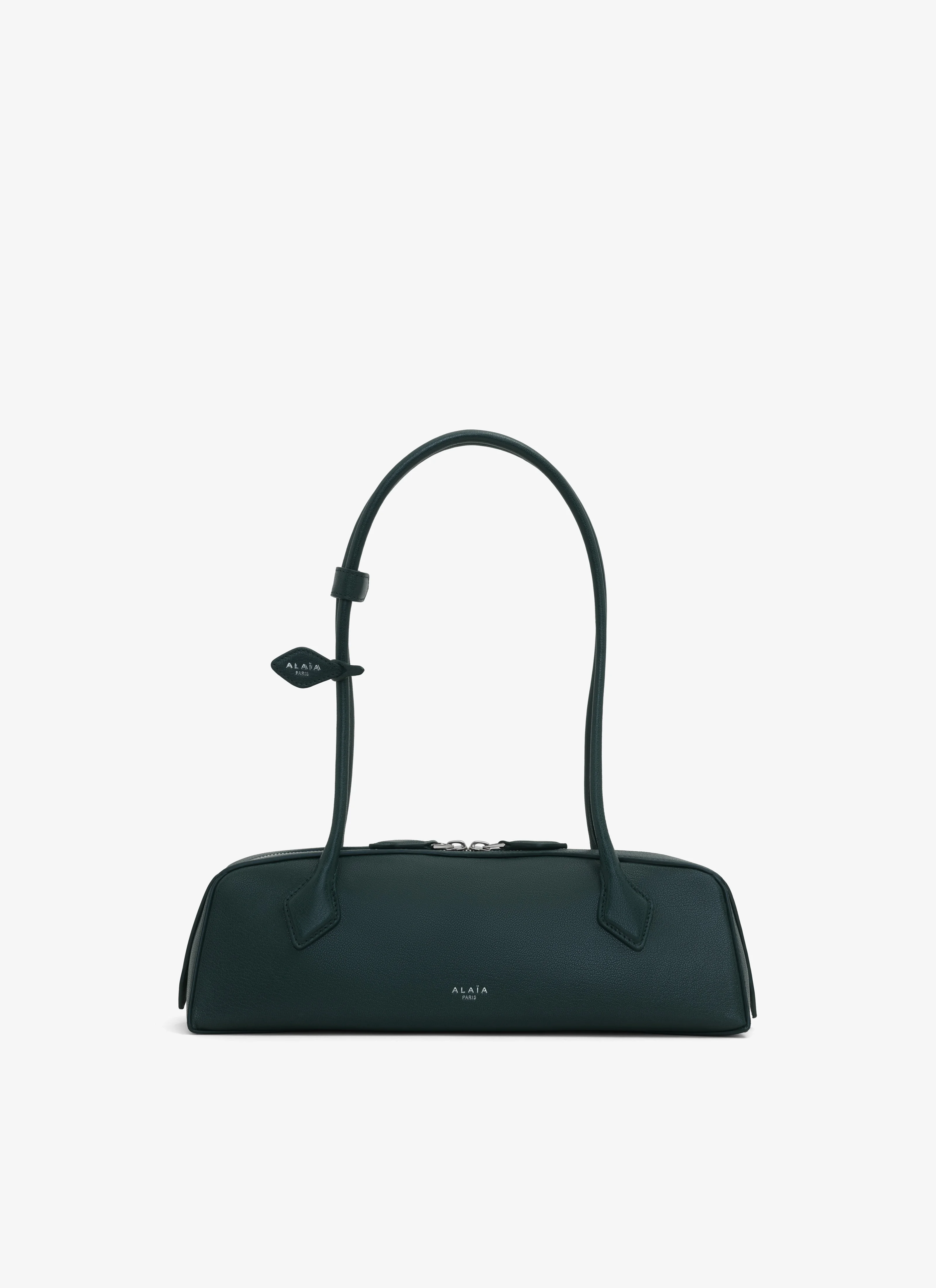 Emblematic shoulder bag with an elongated silhouette Long tubular handles with decorative ties, double zip closure, small removable mirror on the inside pocket Goatskin leather with natural subtle grain and shiny finish adding relief to the bag. Vegetal tanning Dimensions (cm) : L 33 X H 11 X D 10 Made in Italy DETAILS MAIN MATERIAL: 100% GOAT LEATHER MAIN LINING: 100% LAMBSKIN PRODUCT REFERENCE: AA1S06033CA212 - 601