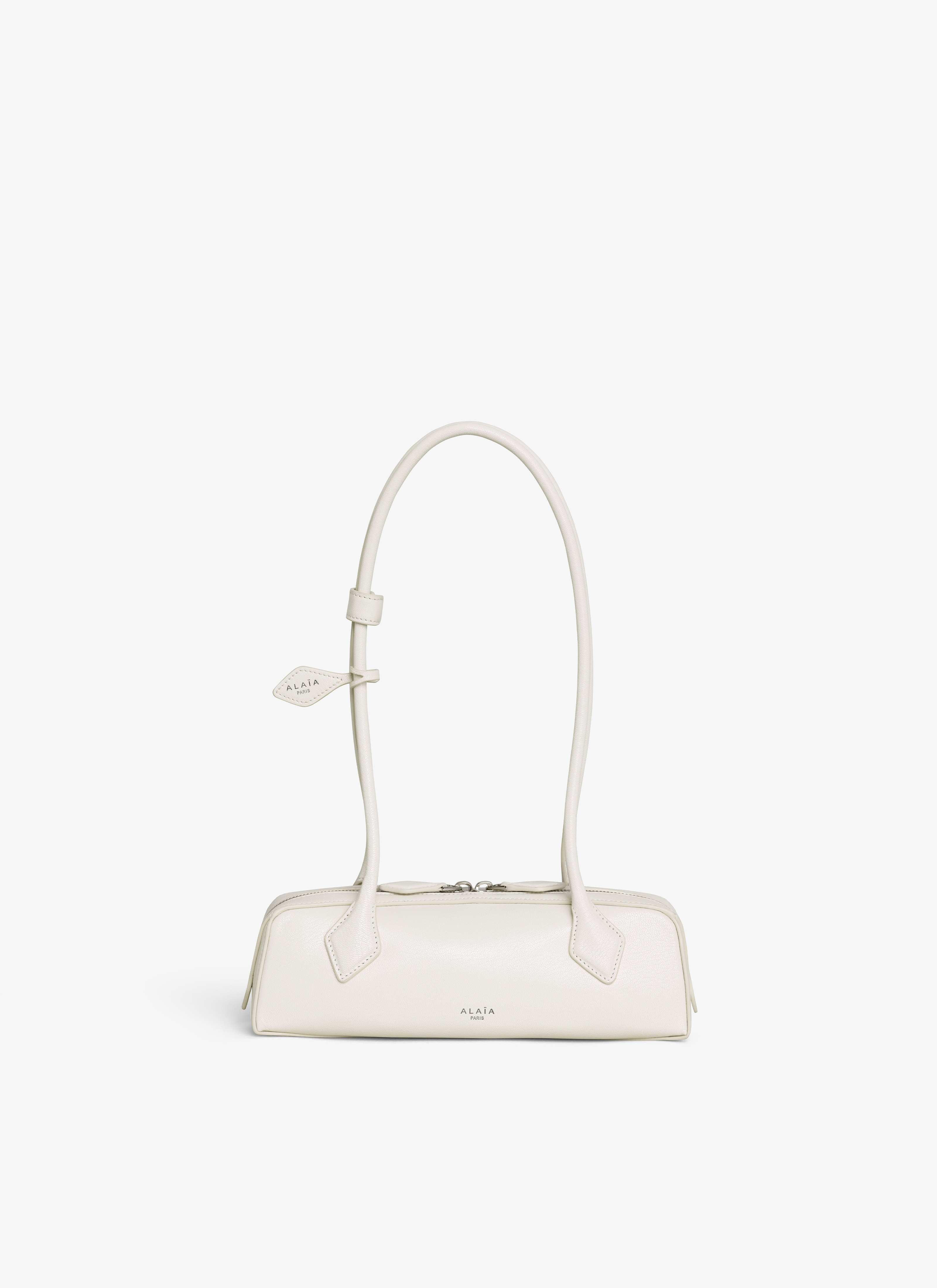 shoulder bag elongated shape tubular handles with two decorative ties double zip fastening small removable mirror in the inside pocket dimensions (cm): l27 x h9 x p8 made in italy DETAILS COMPOSITION: 100% CALFSKIN LINING: 100% LAMBSKIN APPLICATION: 100% BRASS PRODUCT REFERENCE: AA1S06029CA212 - 030