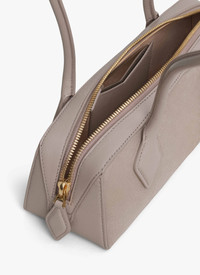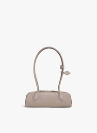 Small shoulder bag with an elongated silhouette Long tubular handles with decorative ties, double zip closure, small removable mirror on the inside pocket Mix of suede goatskin and shiny goatskin leather with natural subtle grain. Dimensions (cm) : L 27 X H 9 X D 8 Made in Italy DETAILS MAIN MATERIAL:100% GOATSKIN LEATHER SECONDARY MATERIAL:100% GOATSKIN LEATHER MAIN LINING:100% CALFSKIN LEATHER PRODUCT REFERENCE : AA1S06029CA577 - 824