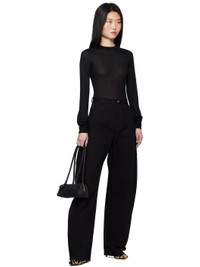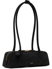 Croc-embossed nubuck shoulder bag in black. · Press-stud tab at rolled shoulder straps · Detachable logo tag at shoulder strap · Logo stamp at face · Two-way zip closure · Card slot at interior · Suede lining · H3.5" x W10.5" x D3.5" Supplier color: Noir Leather. Made in Italy 251483F048011