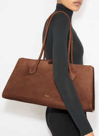 Elevated functional tote bag with signature geometrical details Long tubular handles with decorative ties, two large gussets with magnetic closure and one front pocket with double zip closure Shoulder carry Soft feel nubuck calf leather Dimensions (cm) : L 42 X H 21 X D 19 Made in Italy DETAILS MAIN MATERIAL: 100% CALF LEATHER MAIN LINING: 100% CALF LEATHER PRODUCT REFERENCE: AA1S06043CA214 - 731